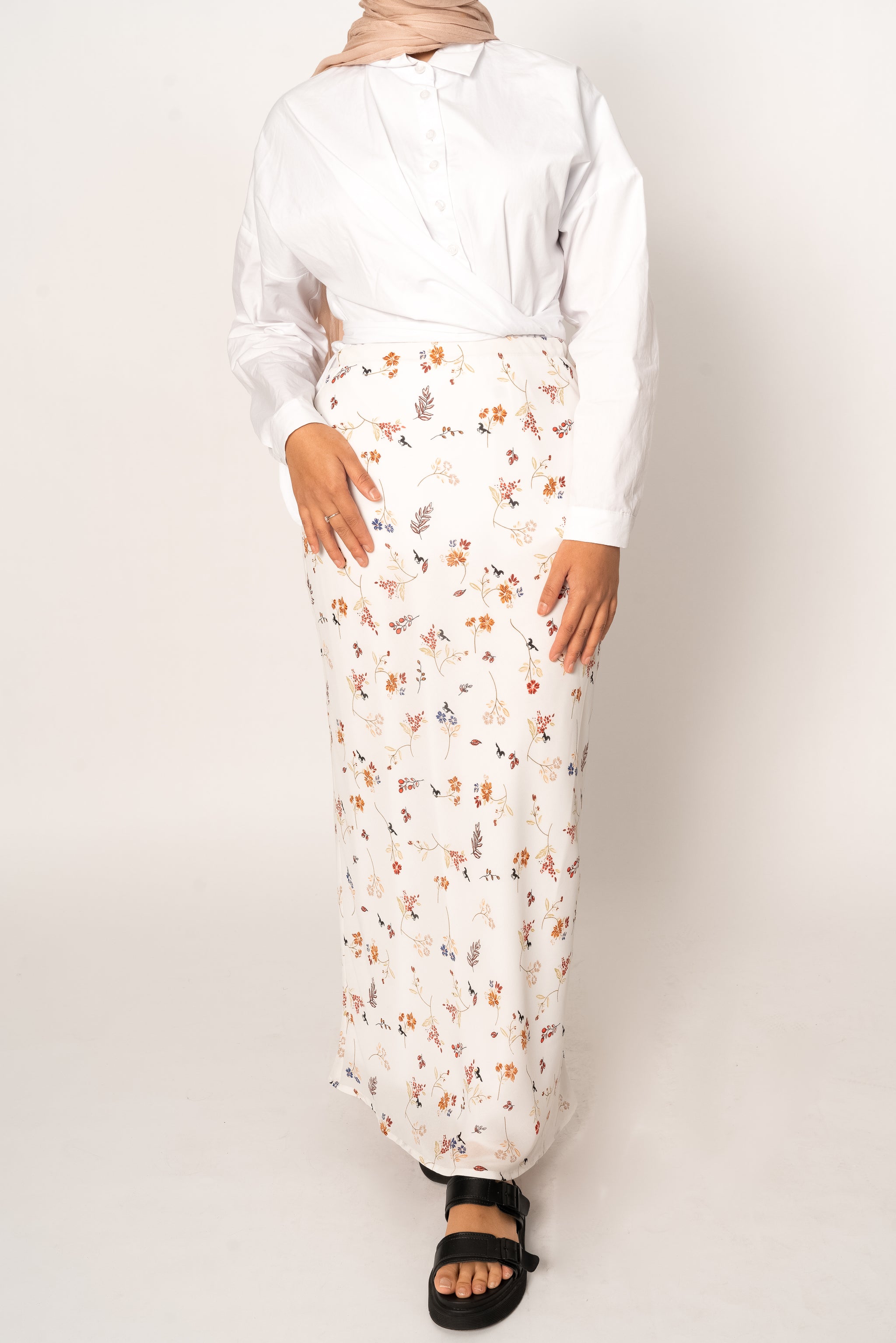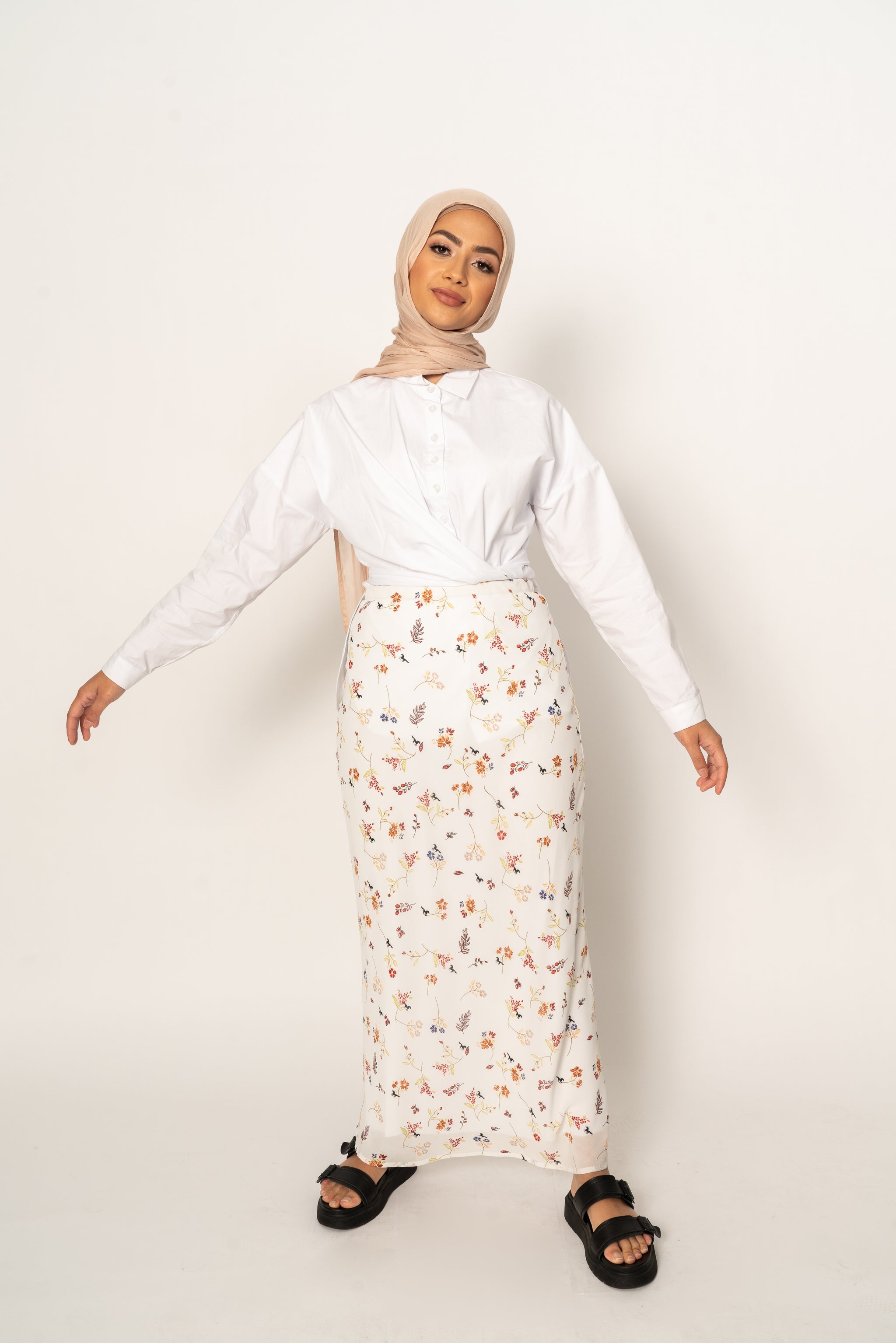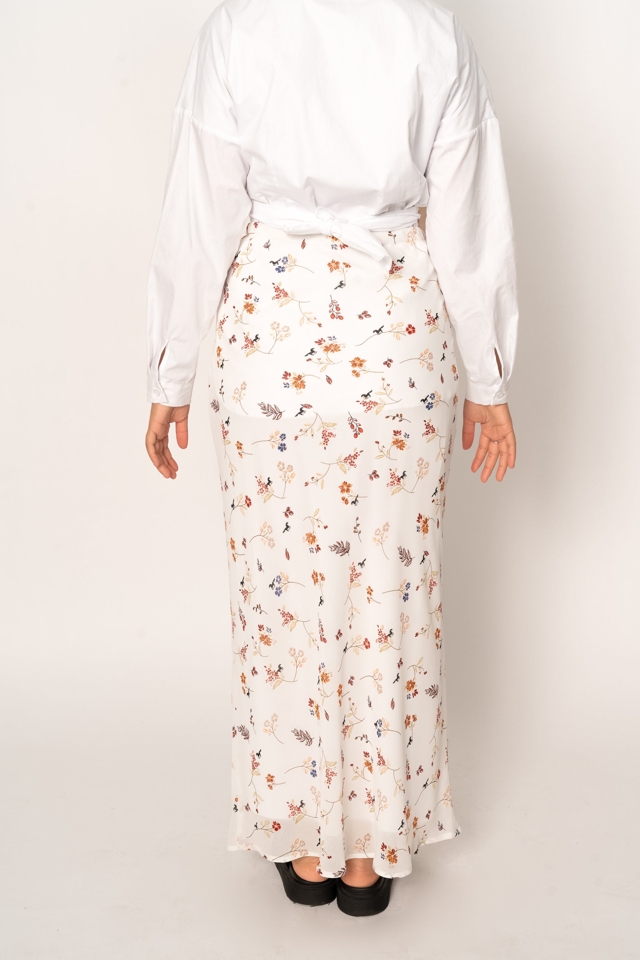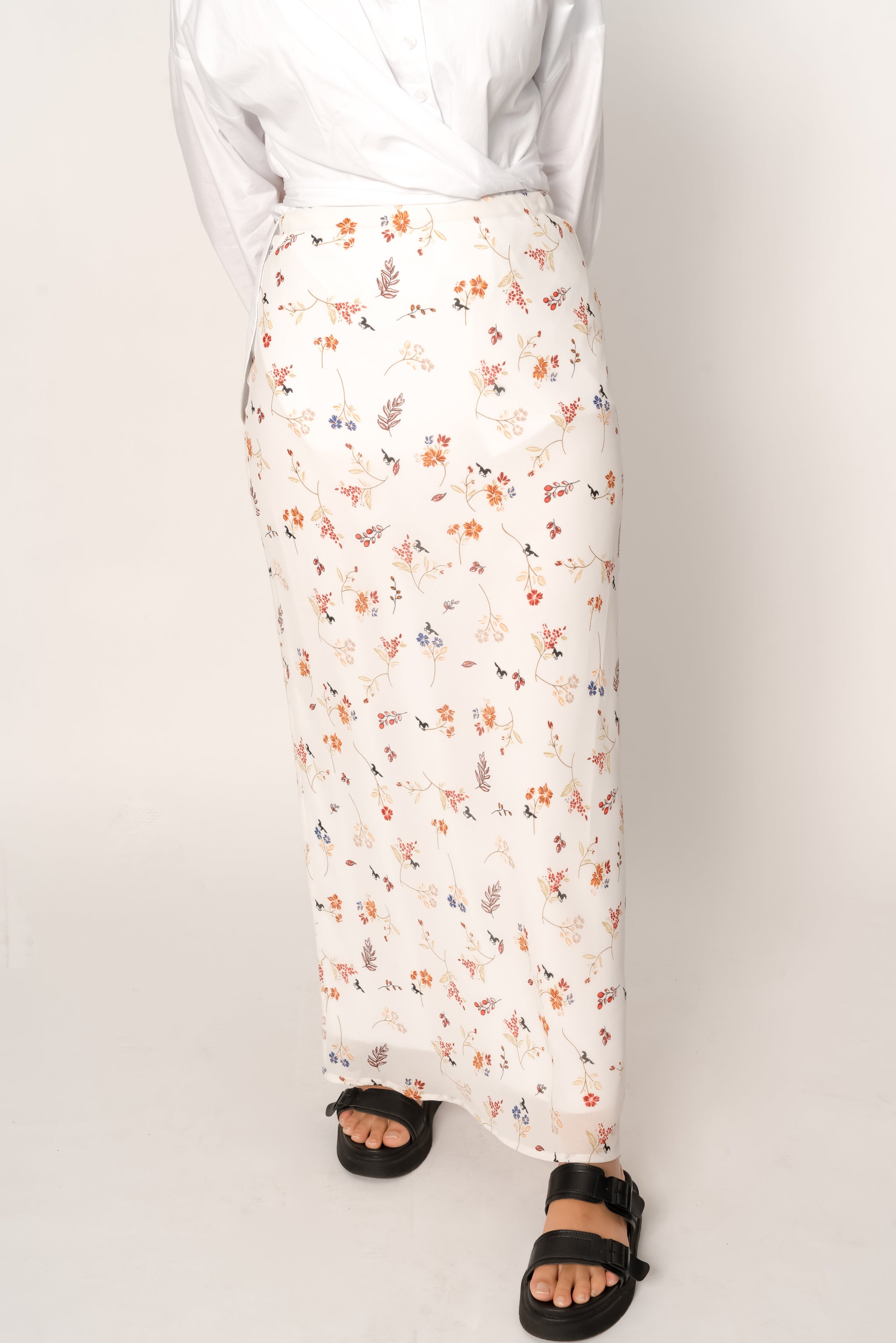 'Eve' White Floral Print Chiffon Maxi Skirt