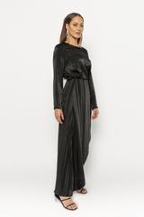 The Hana overlay pants is a dramatic piece that will be your wardrobe staple for years to come. With semi shiny and matte surface, subtle stripes and super chic overlay, it is the ultimate pants that can be dressed up when you are in the mood to be extra without going overboard.